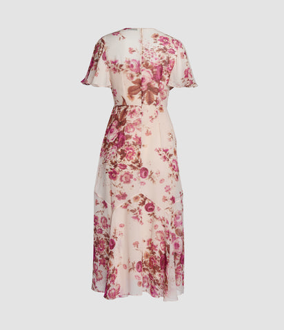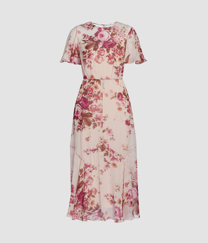Floral Print Silk Voile Fit And Flared Midi Dress