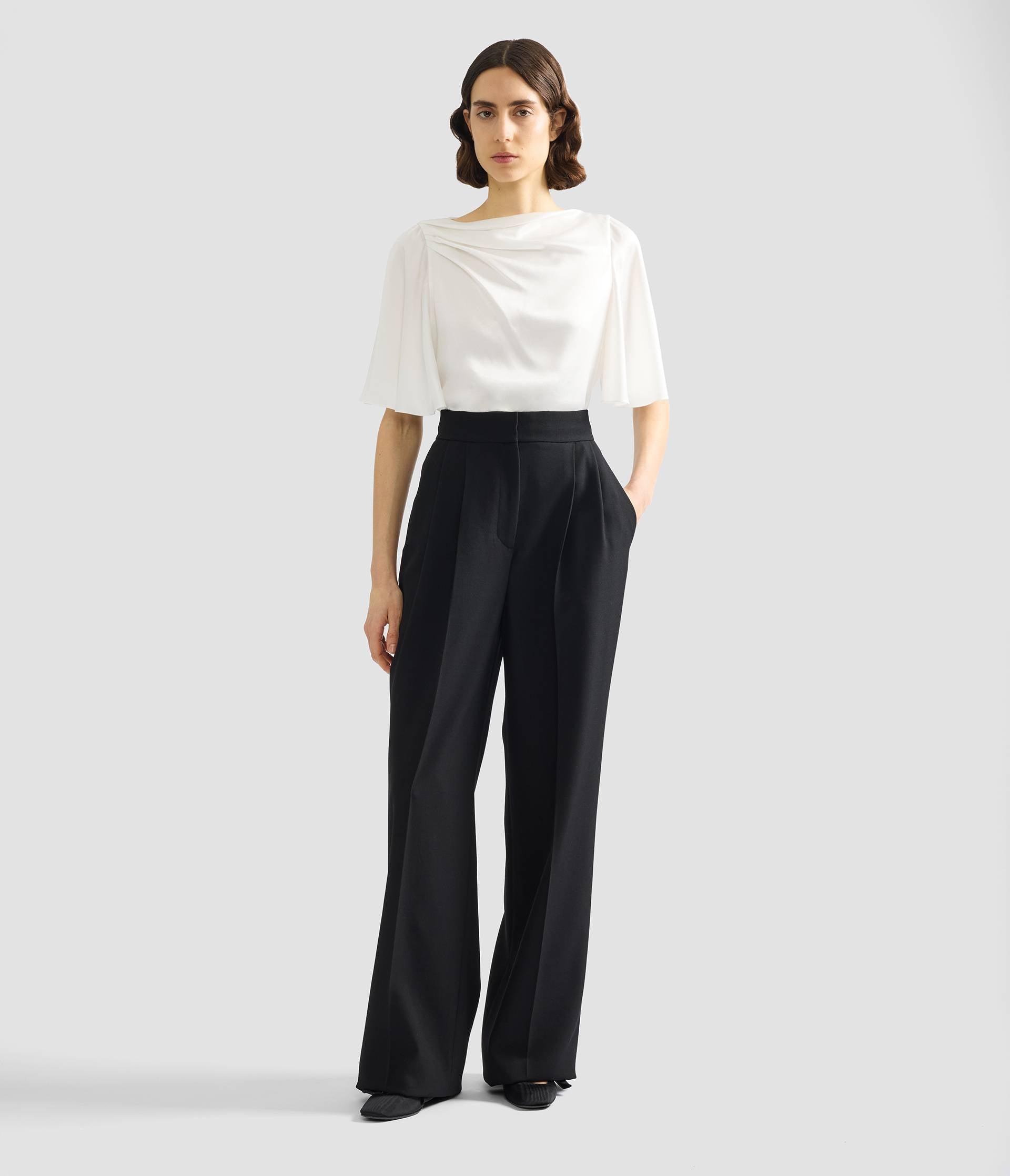 Tailored from black grain de poudre, these trousers are shaped for a straight fit with a high-rise waist.