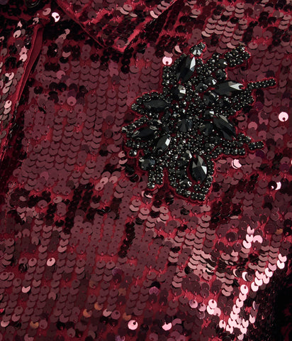 Cut from georgette for an oversized fit, this shirt is covered in ruby-red sequins. It has a black crystal-embellished appliqué at the chest.