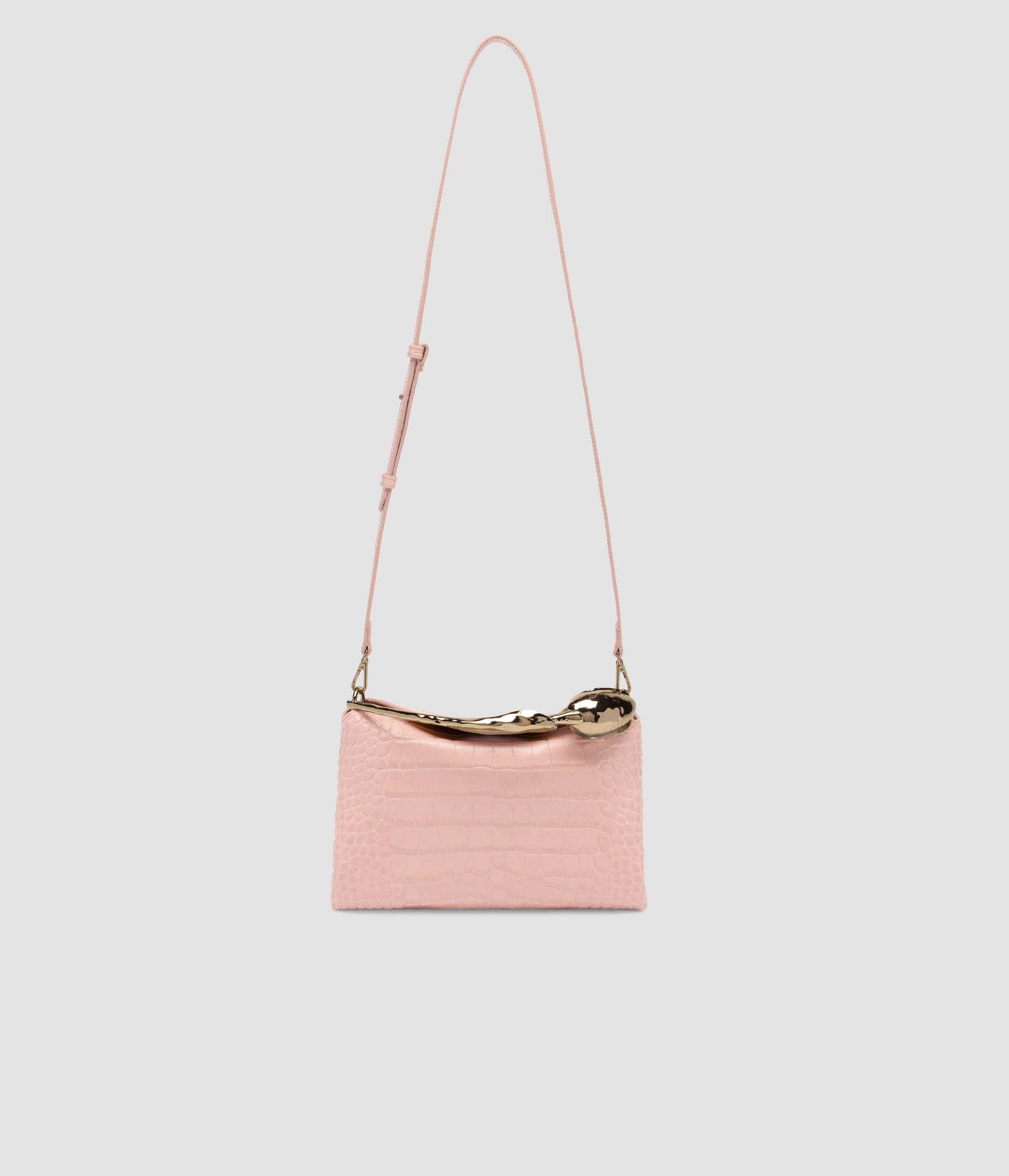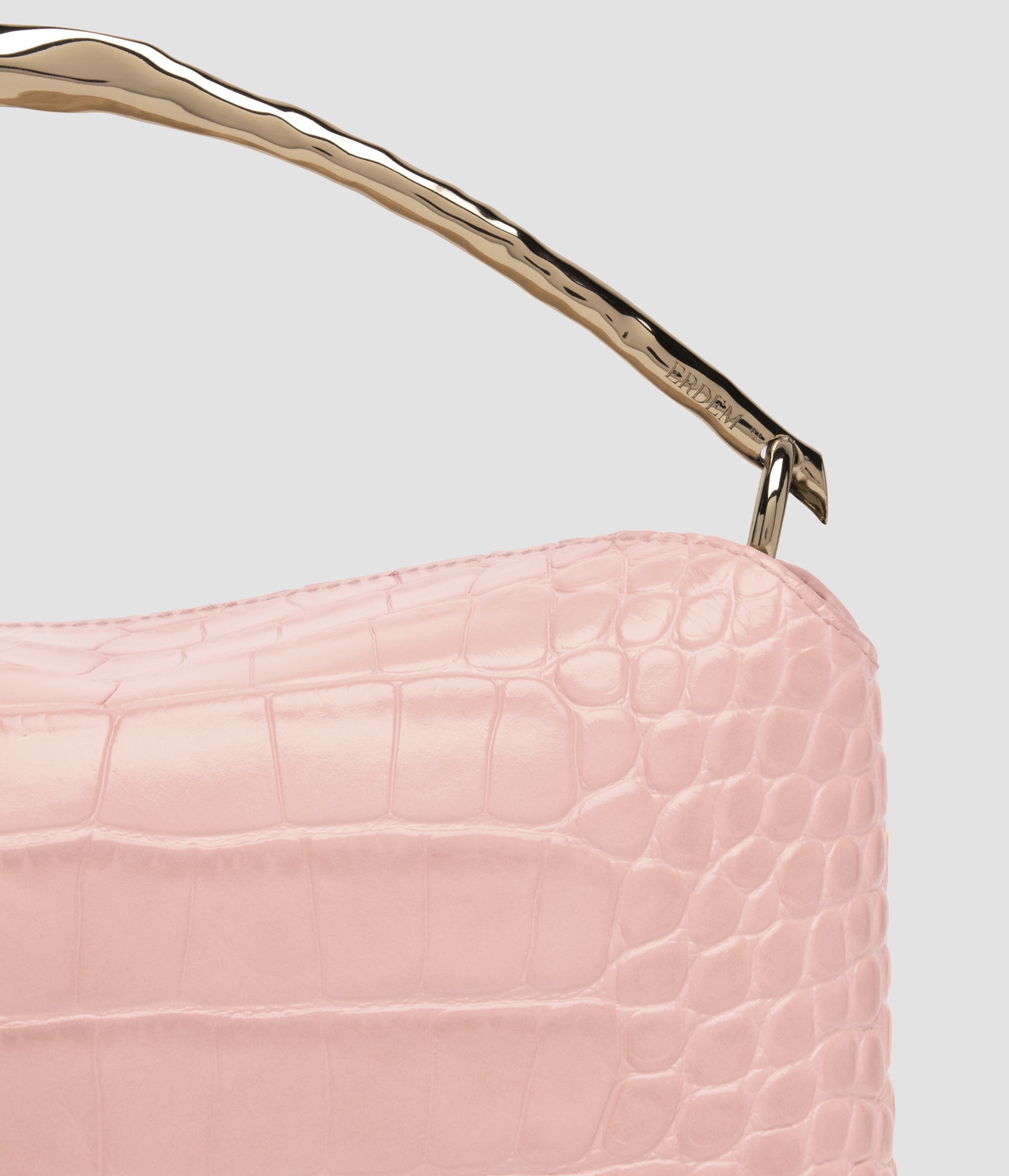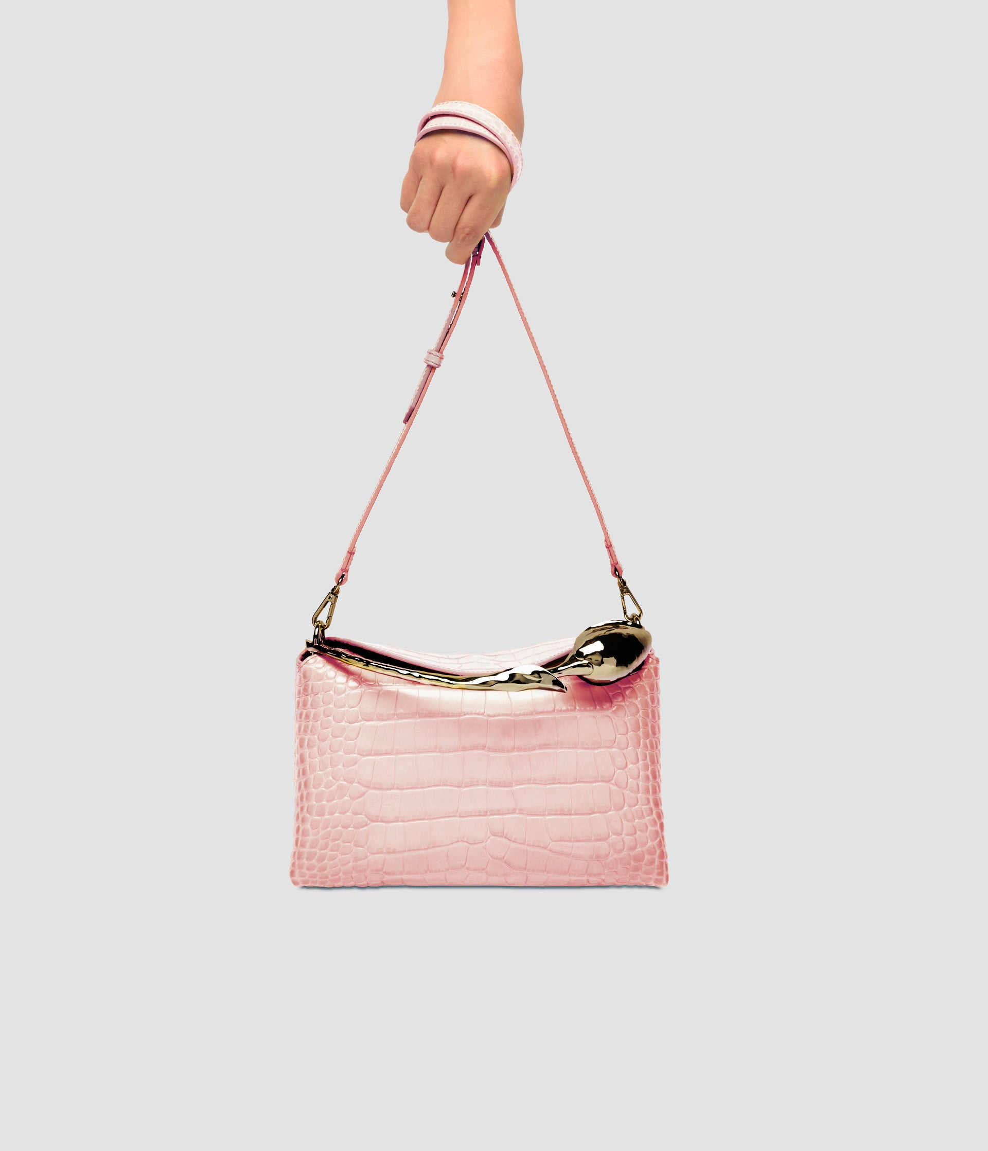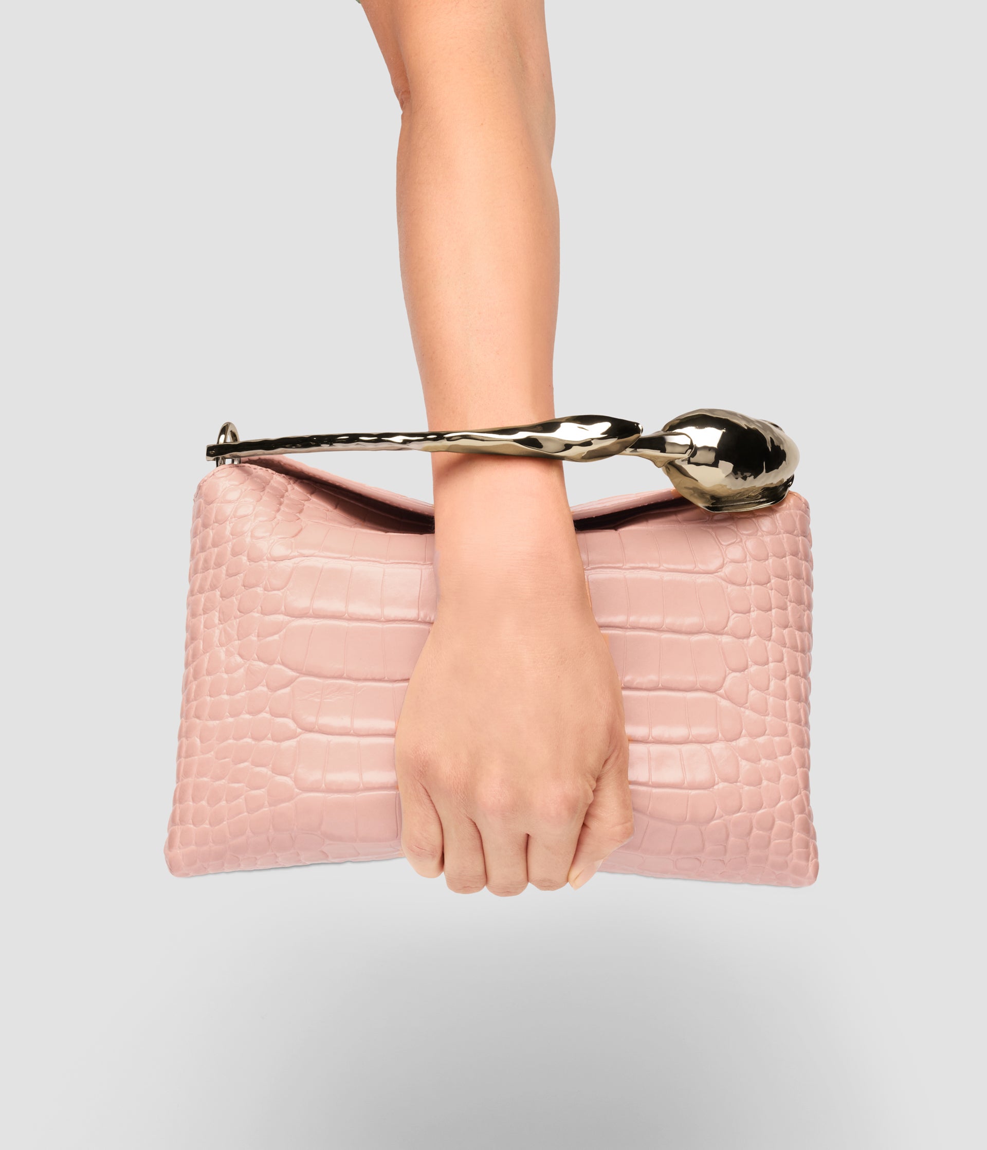 The Bloom Bag's gold-toned flower bud handle takes seven hours to produce using the lost wax casting method. It also features a petal-shaped magnetic top closure.