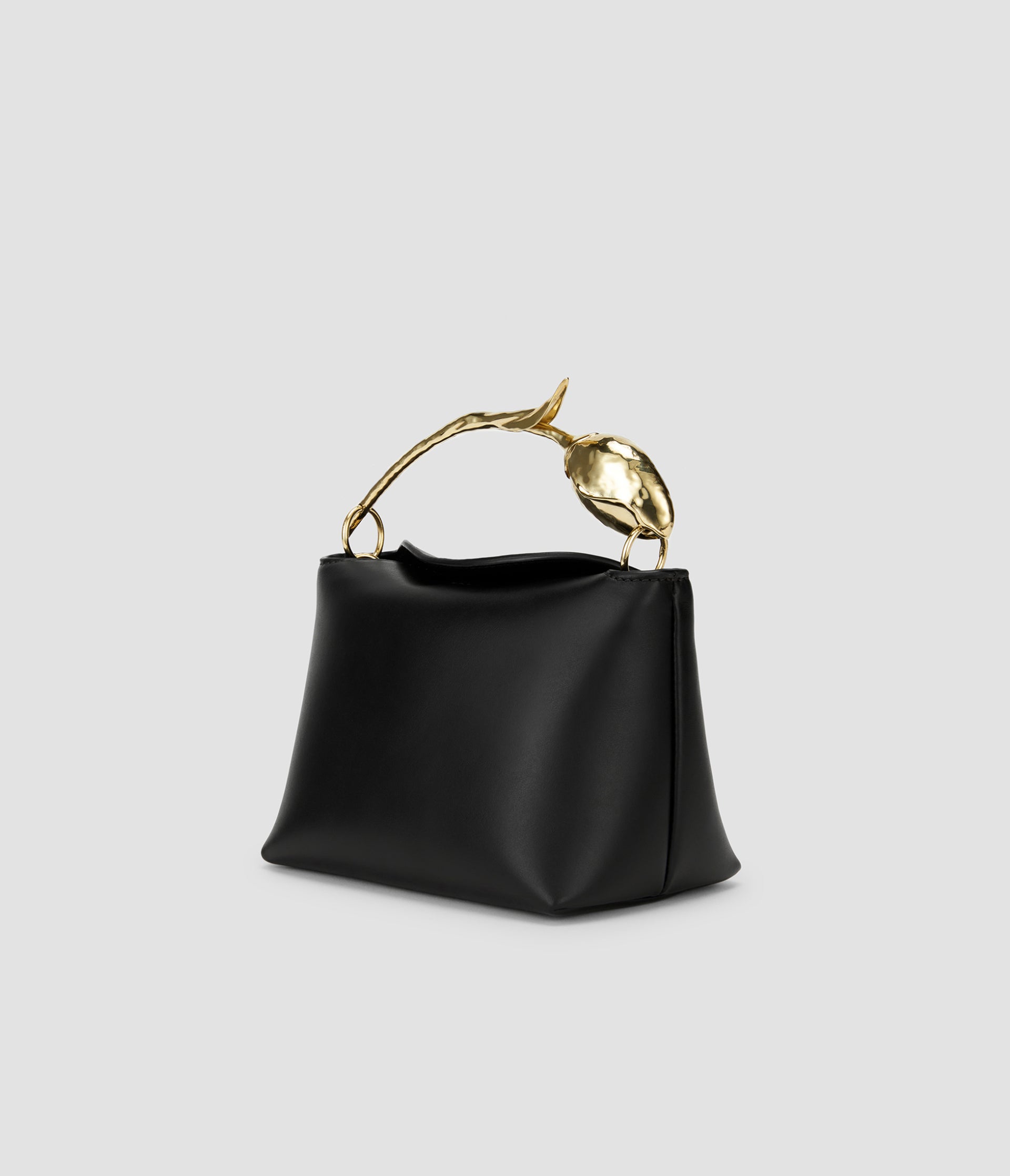 The Bloom Bag's gold-toned flower bud handle takes seven hours to produce using the lost wax casting method. It also features a petal-shaped magnetic top closure.