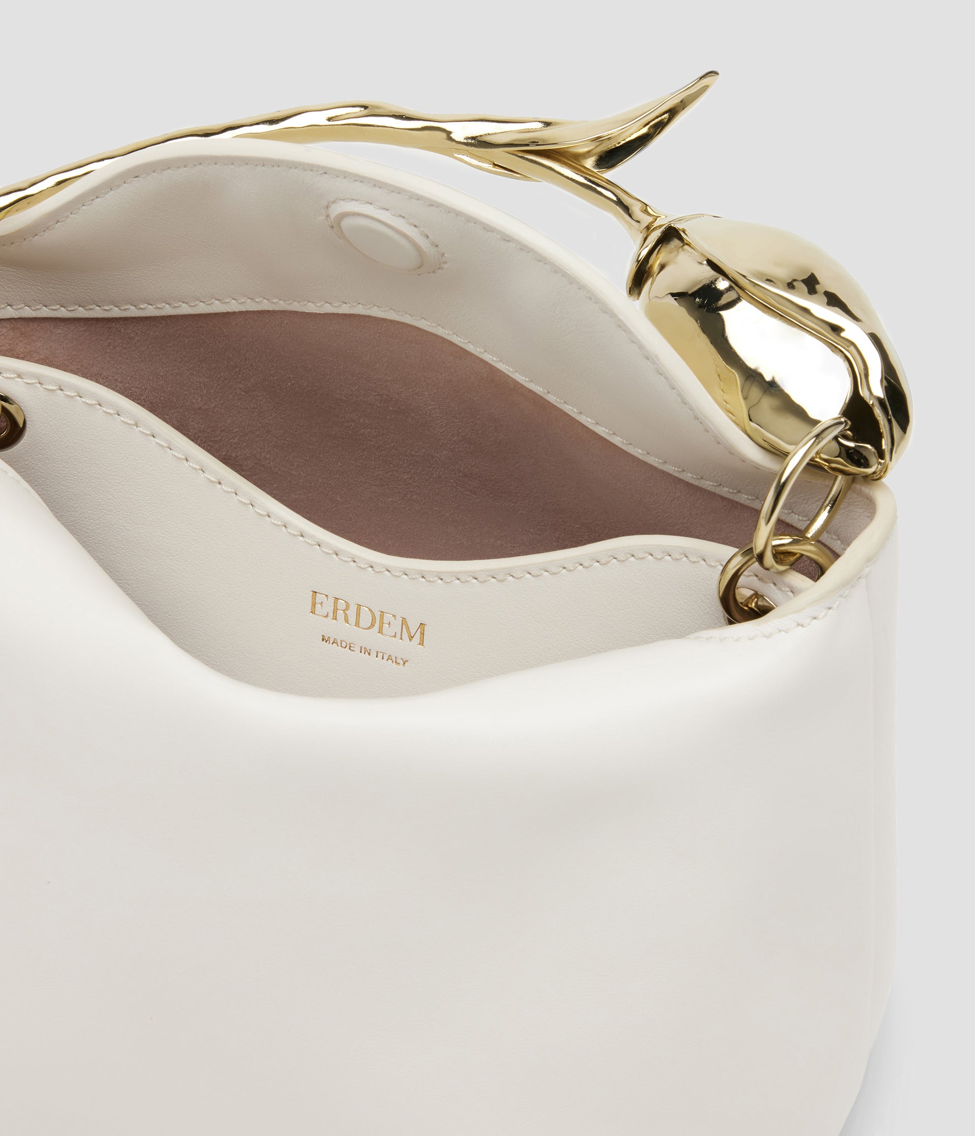 The Bloom Bag's gold-toned flower bud handle takes seven hours to produce using the lost wax casting method. It also features a petal-shaped magnetic top closure.