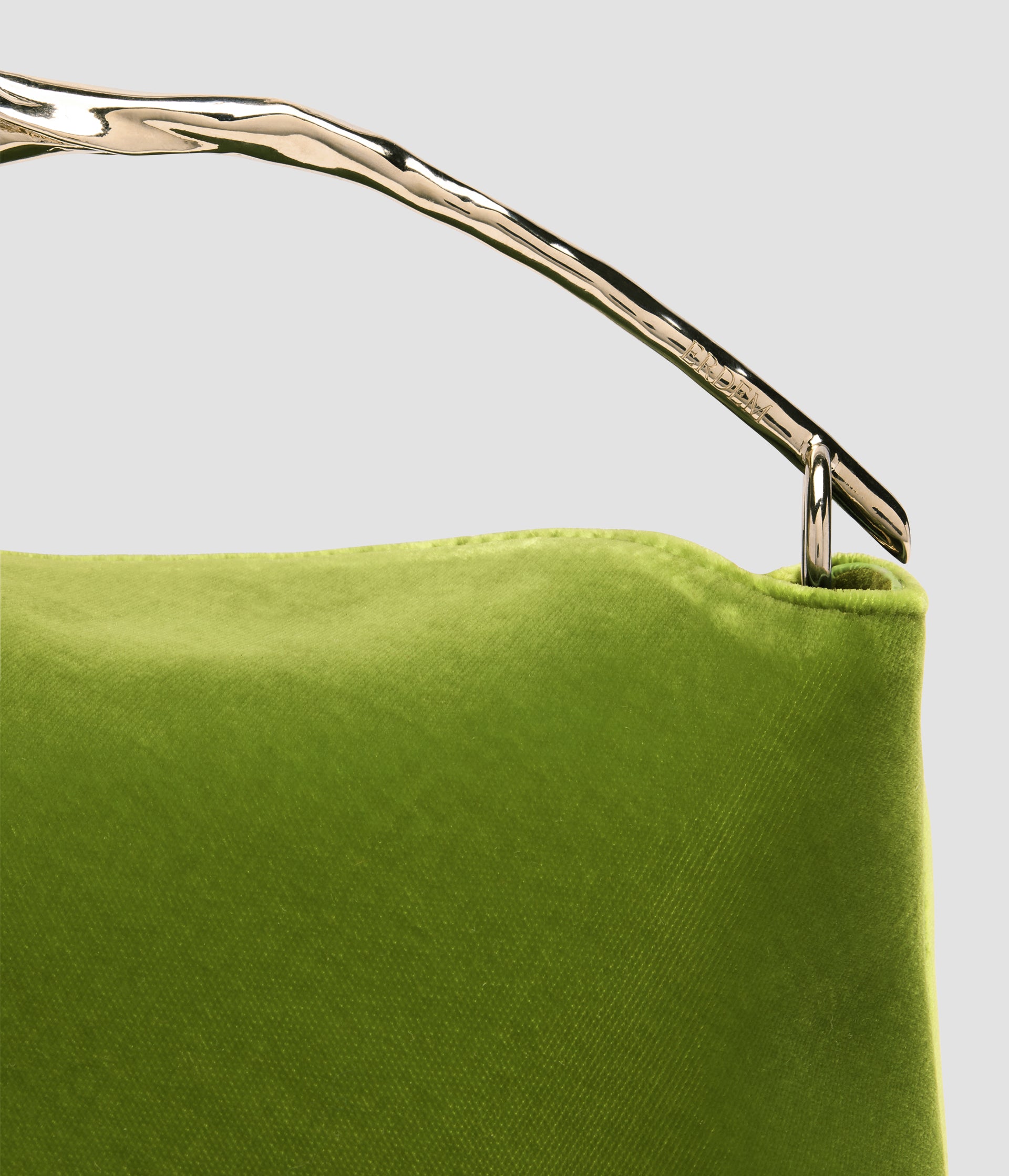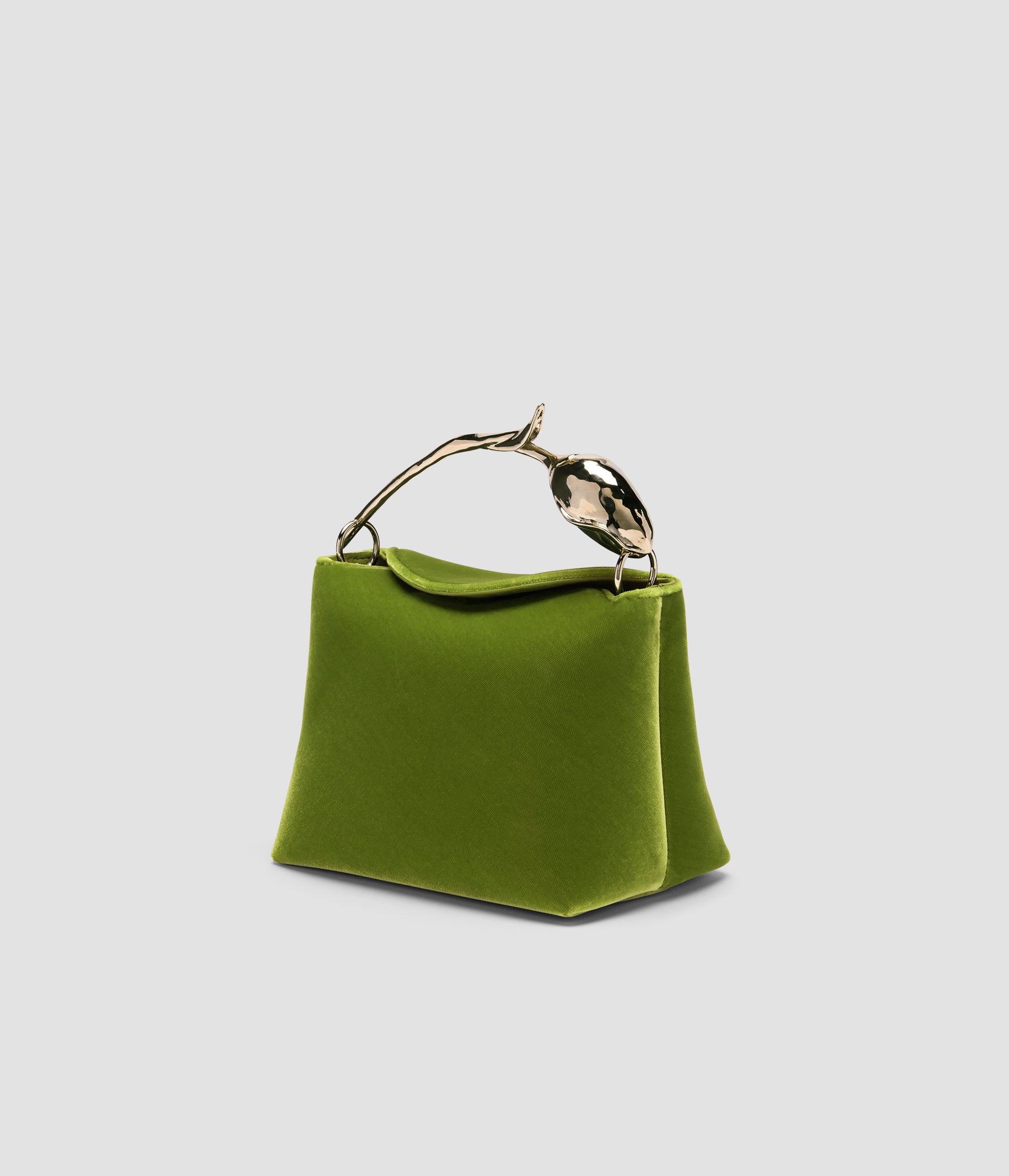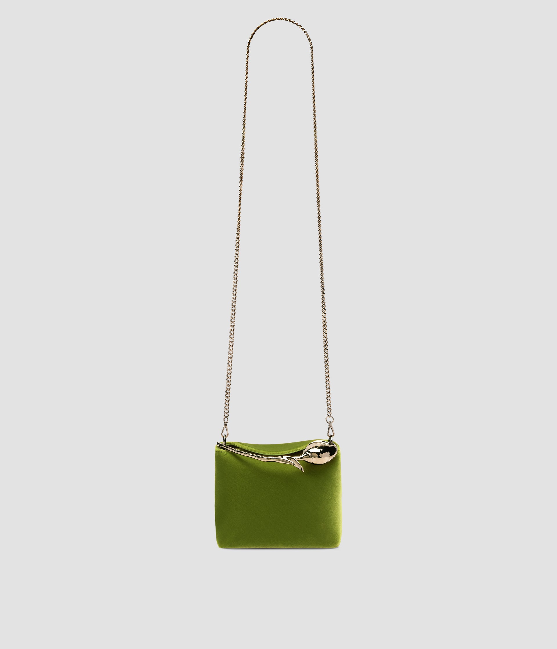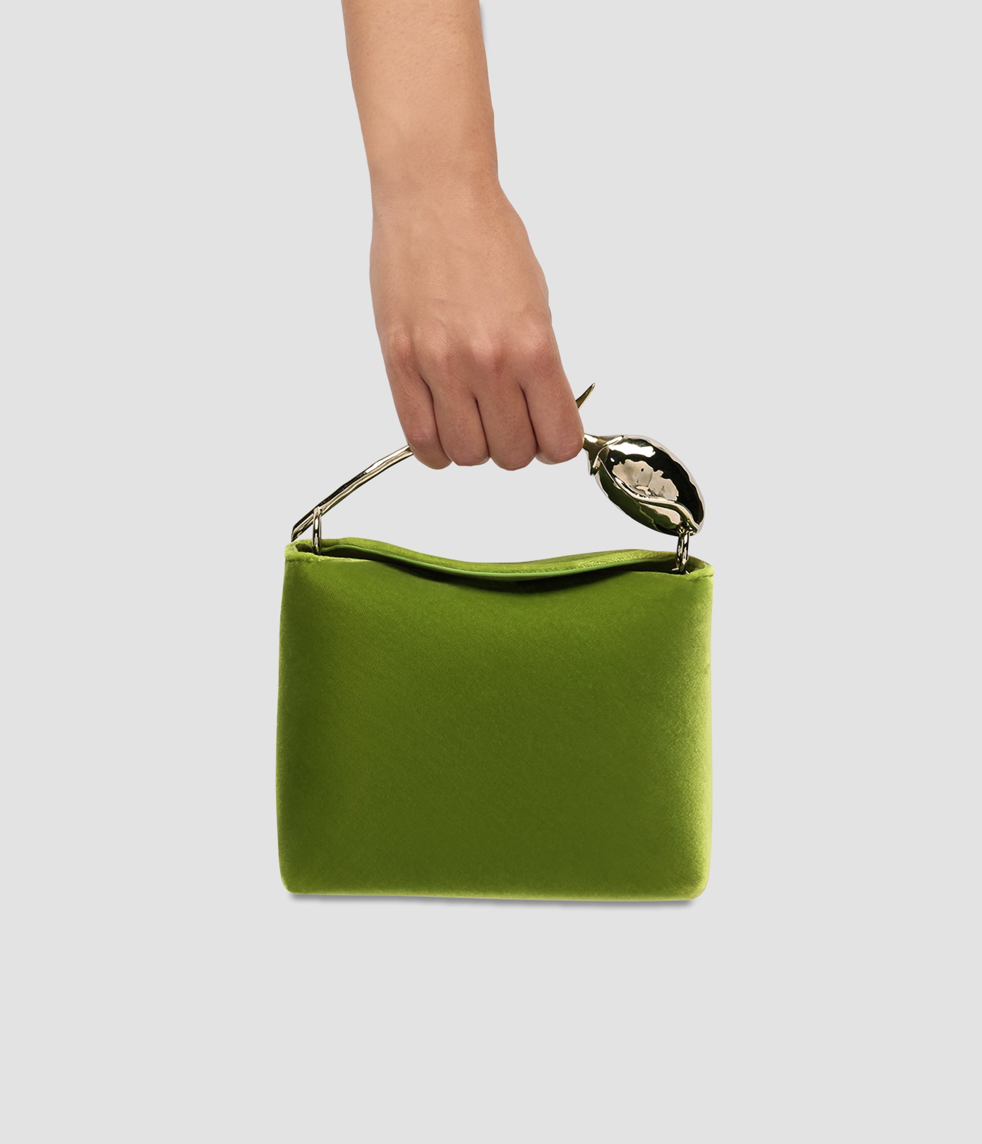 The Bloom Bag's gold-toned flower bud handle takes seven hours to produce using the lost wax casting method. It also features a petal-shaped magnetic top closure.