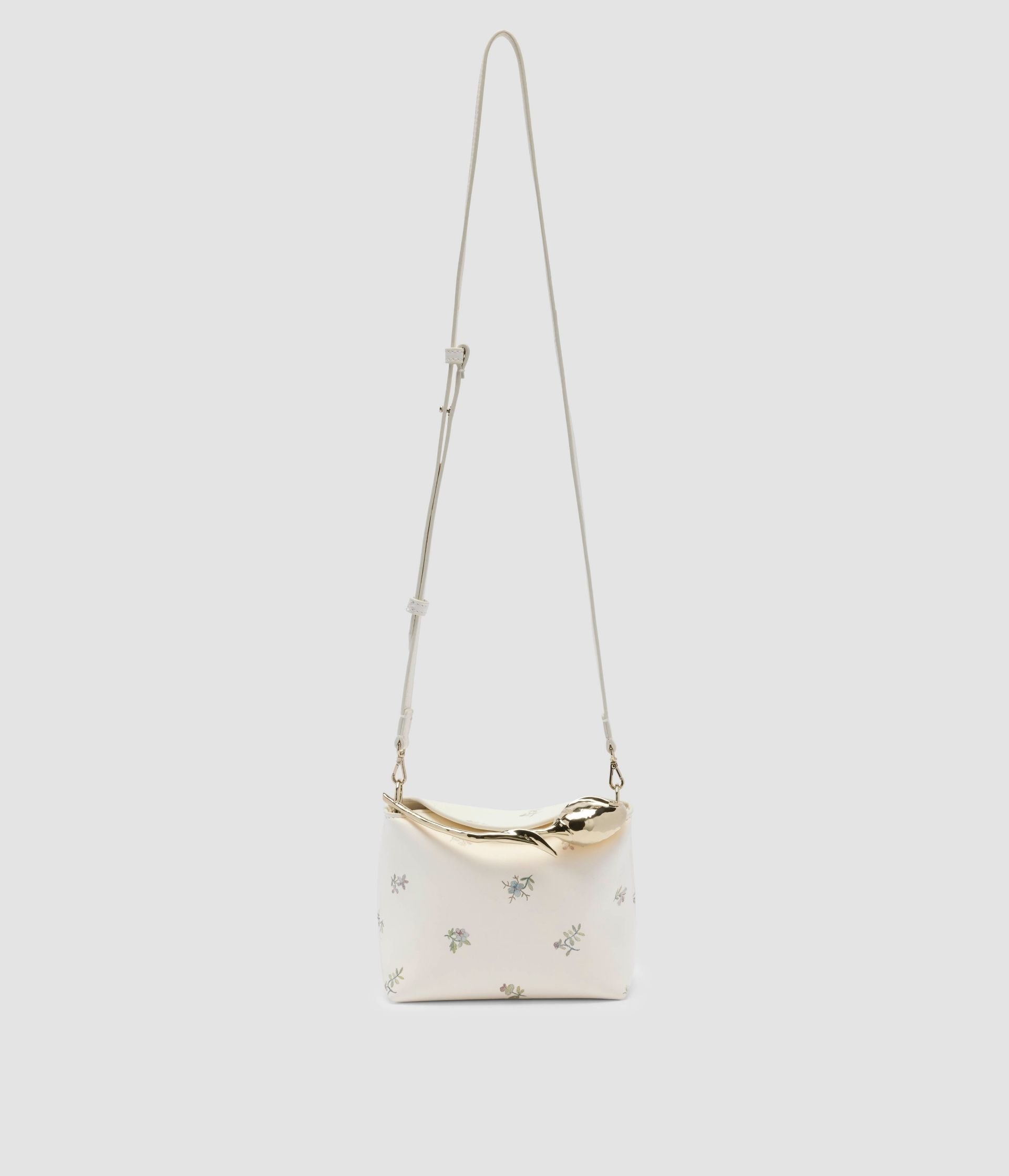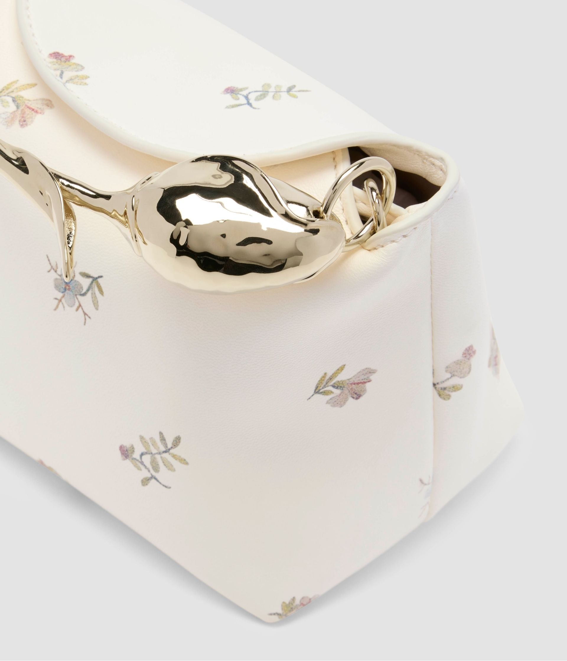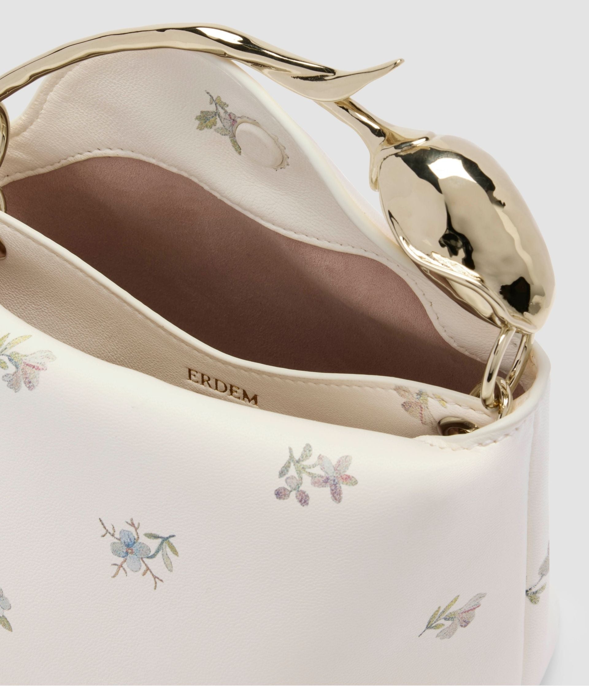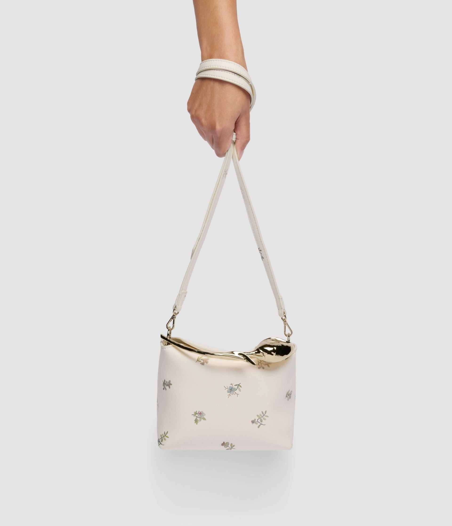 The Bloom Bag's gold-toned flower bud handle takes seven hours to produce using the lost wax casting method. It also features a petal-shaped magnetic top closure.