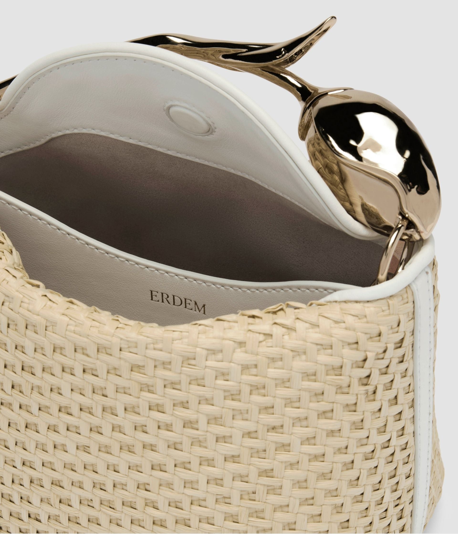 The Bloom Bag's silver-toned flower bud handle takes seven hours to produce using the lost wax casting method. It also features a petal-shaped magnetic top closure.