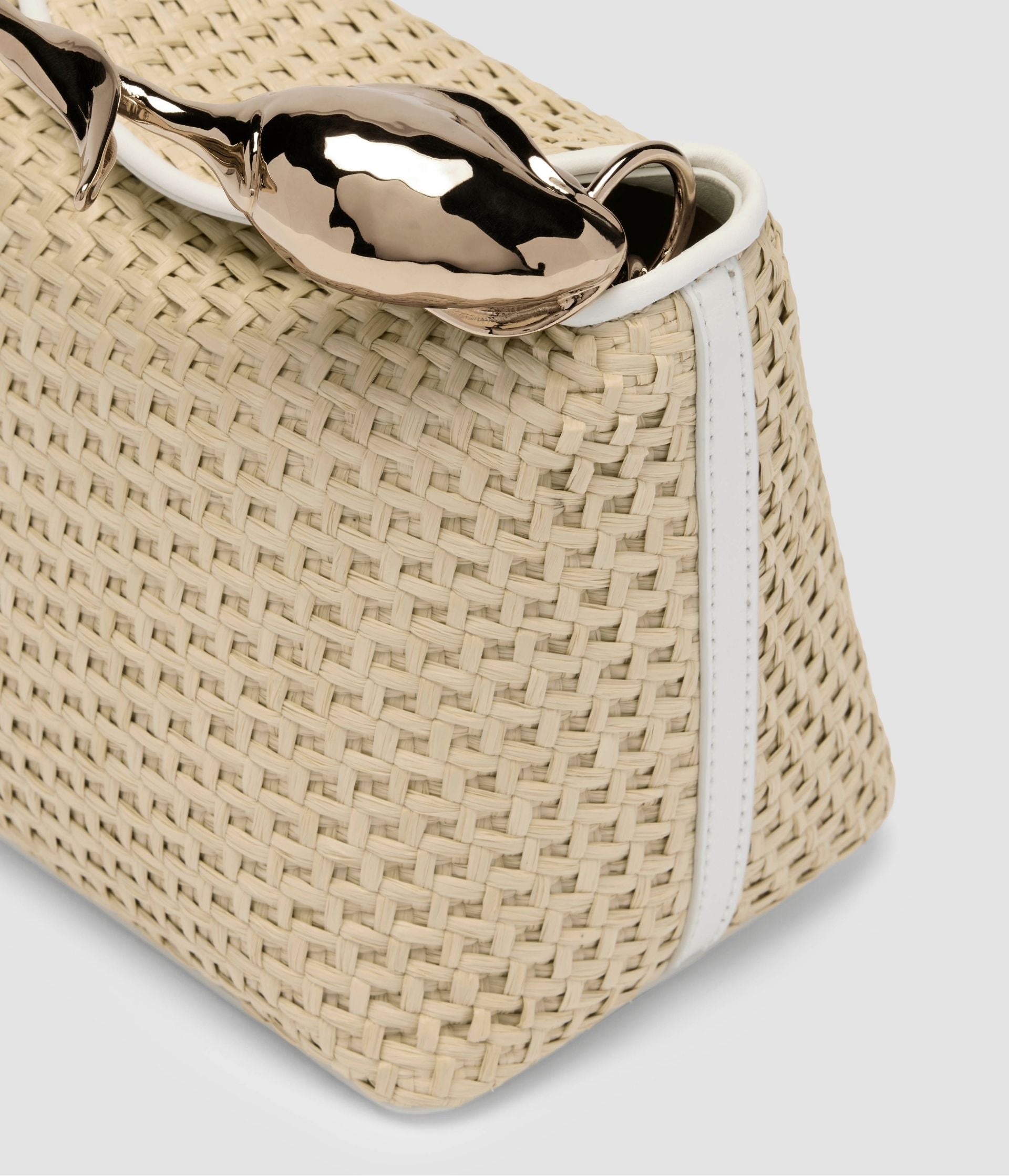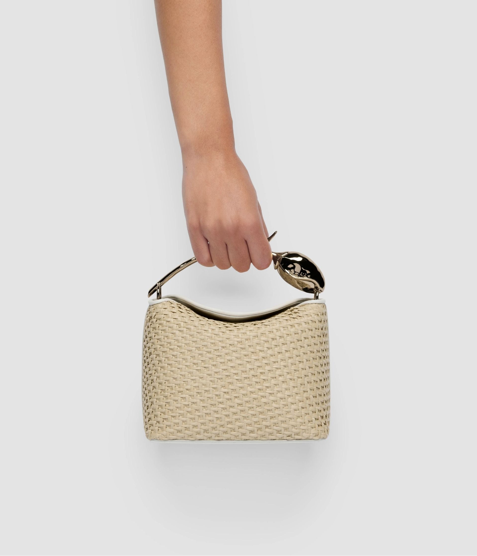 100% Viscose. Lining: 100% Kid Suede. Handle: 100% Brass.