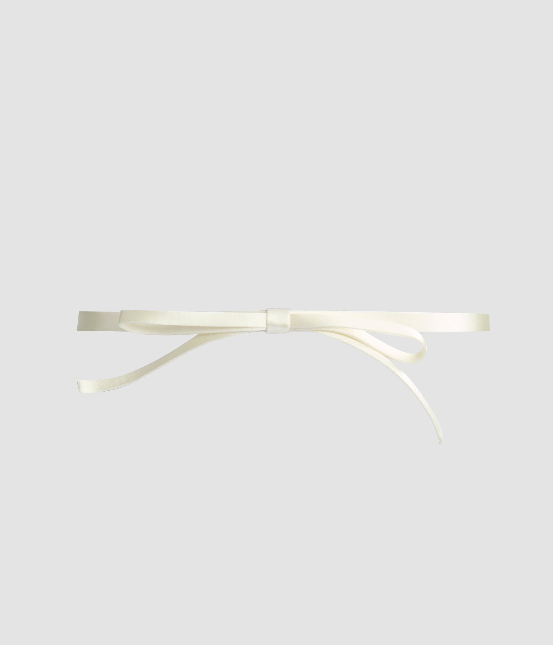 This ivory satin belt is embellished with a large bow.