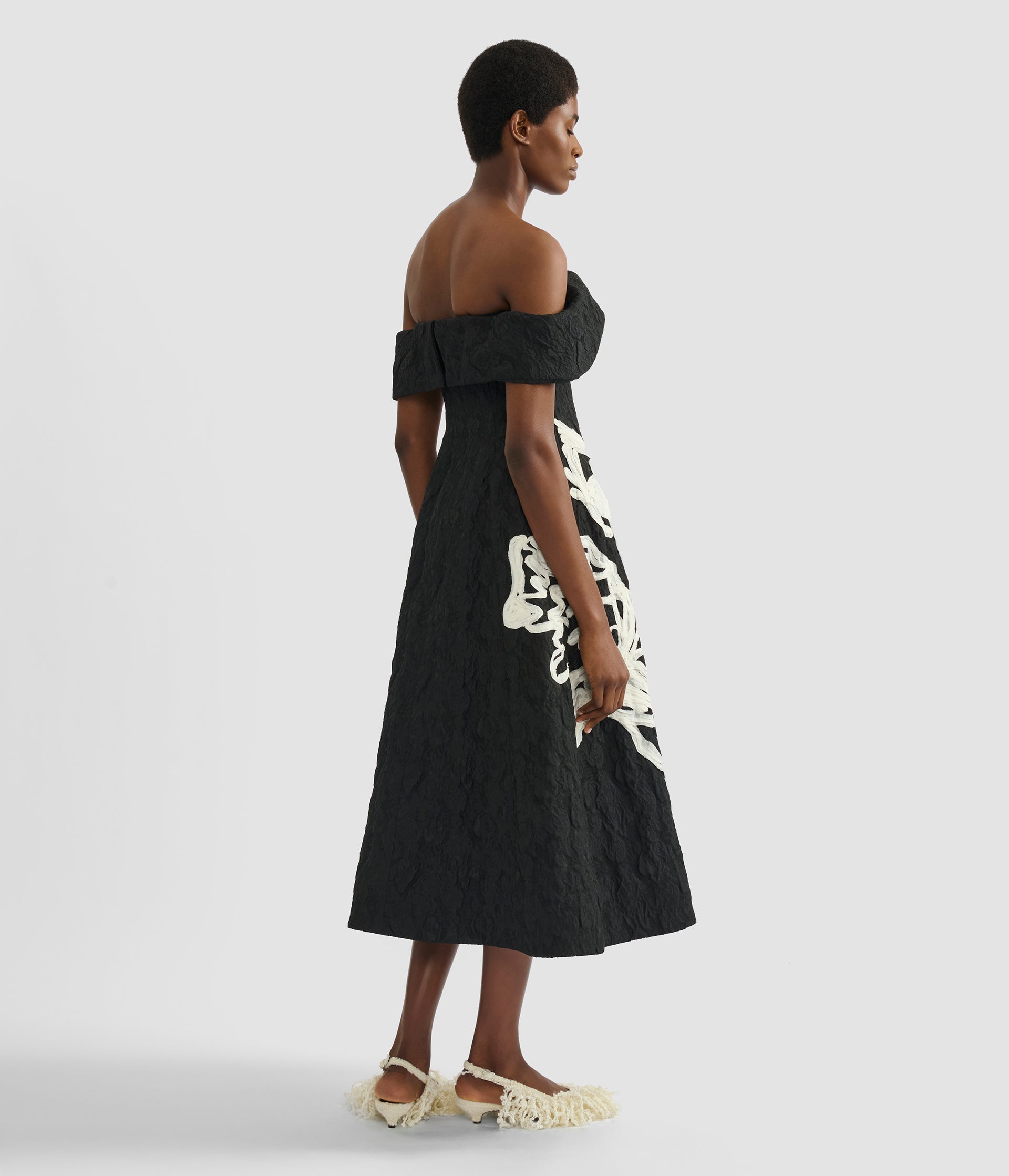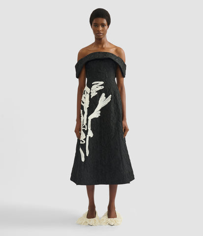 Embroidered Jacquard Off-The-Shoulder Midi Dress