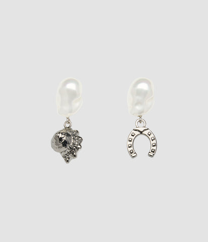 Silver Pearl Charm Earrings