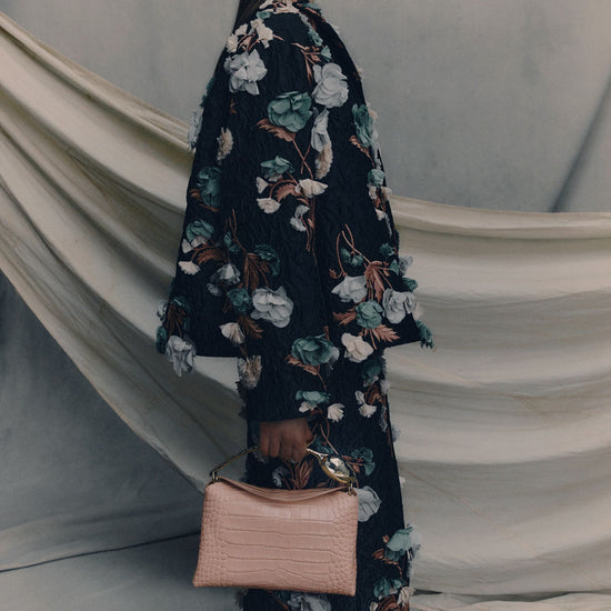Shaped for an oversized, boxy fit, this black jacket is made from textured cloque and decorated with trailing florals. Inspired by paintings by the Dutch masters, the design encompasses embroidery and three-dimensional, laser-cut petals.