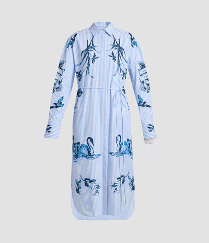 Stripe Poplin Long Sleeve Midi Shirt Dress